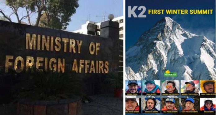 ISLAMABAD – The Foreign Ministry of Pakistan on Sunday has congratulated a team of ten climbers from Nepal who became the first in winter to reach the summit of the savage mountain.